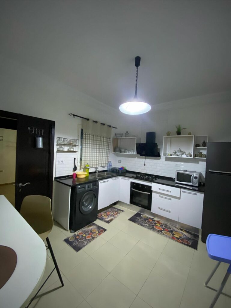 -Au RDC: séjour avec coin salle à manger, cuisine à l’américaine bien équipée, 2 chambres, salle d’eau-WC